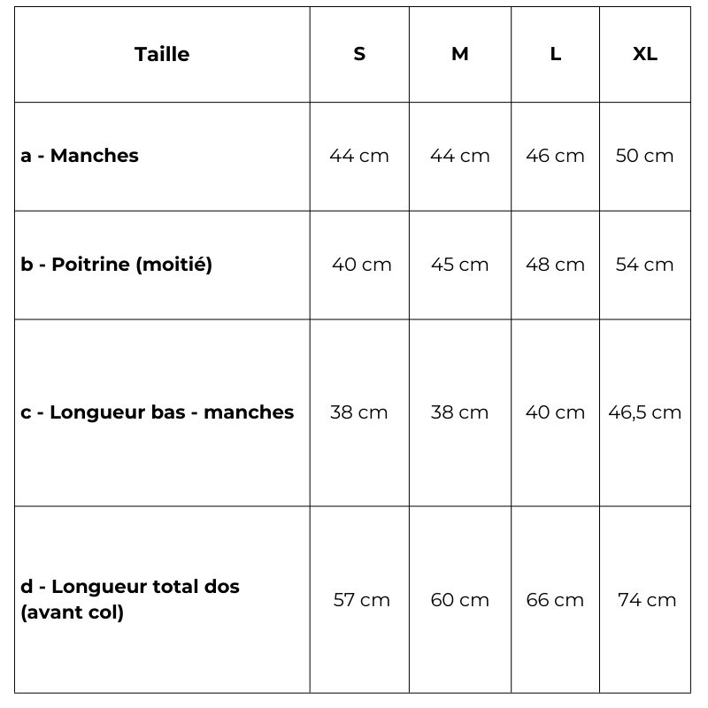 Prenez un pull dans lequel vous vous sentez bien, mesurez sur son l'envers, les 4 différentes parties suivant le tableau ci-dessous.