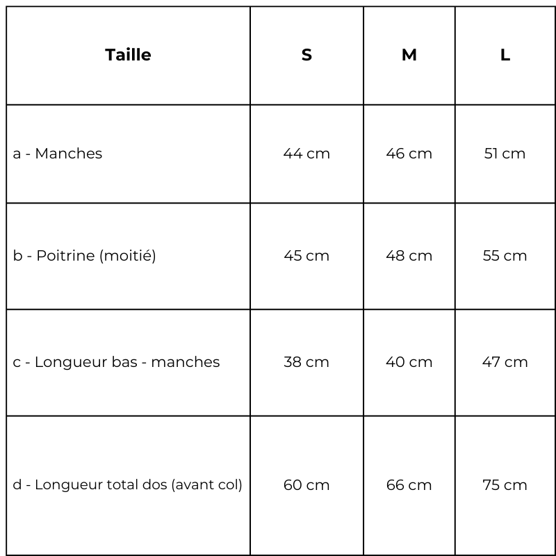 Si certaines mesures ne correspondent pas à vos attentes, choisissez la taille la plus proche et indiquez-moi (dans les "Instructions spéciales concernant la commande") les ajustements à apporter. Je réaliserai votre pull sur mesure.